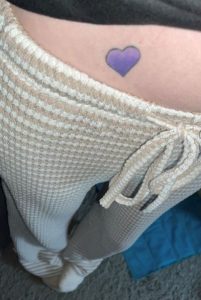 Soph, 21, got a tattoo of a purple heart as a memento of her time as a volunteer for our e-wellbeing service – a youth-led digital service and participation group for young people. “E-wellbeing is important to me and I wanted to have the tattoo as a reminder that I can do lots of things.”